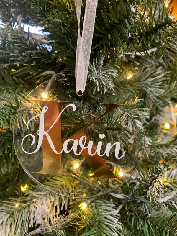 Deze unieke kerstbal is van plexiglas en heeft een doorsnee van 10 cm.