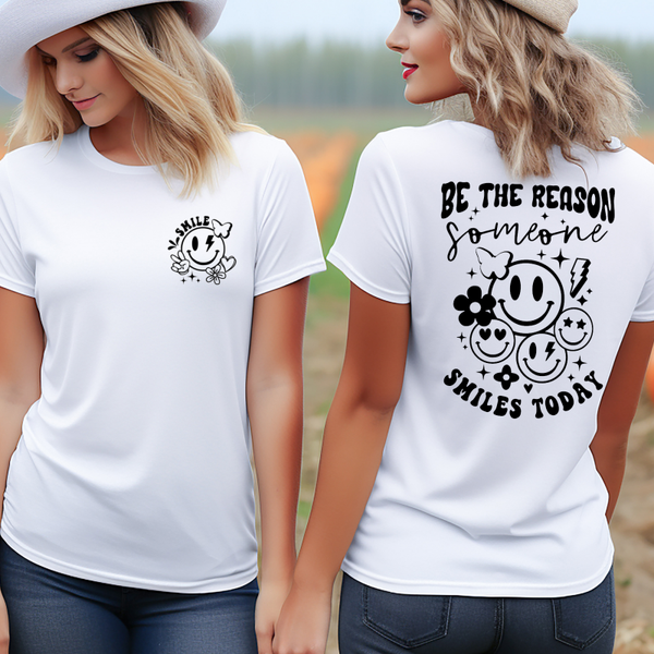 Kleine opdruk voorkant en grote opdruk achterkant.