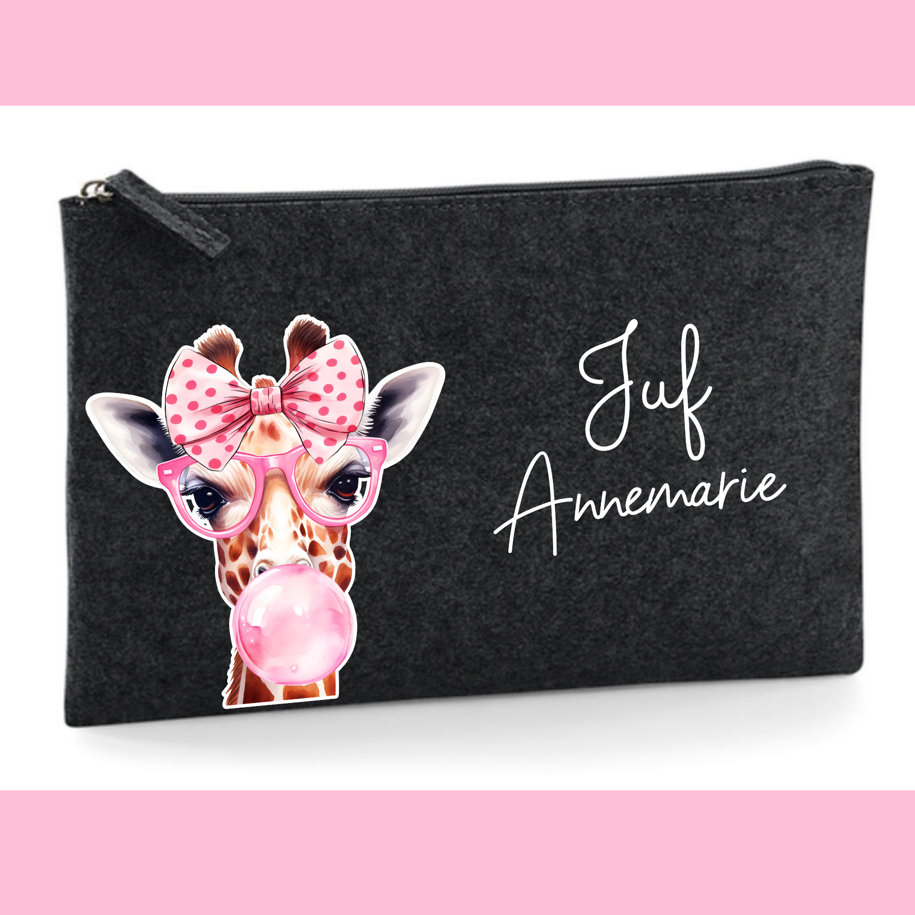 Hoe leuk is deze juf etui met giraf, naam is zelf aan te passen.