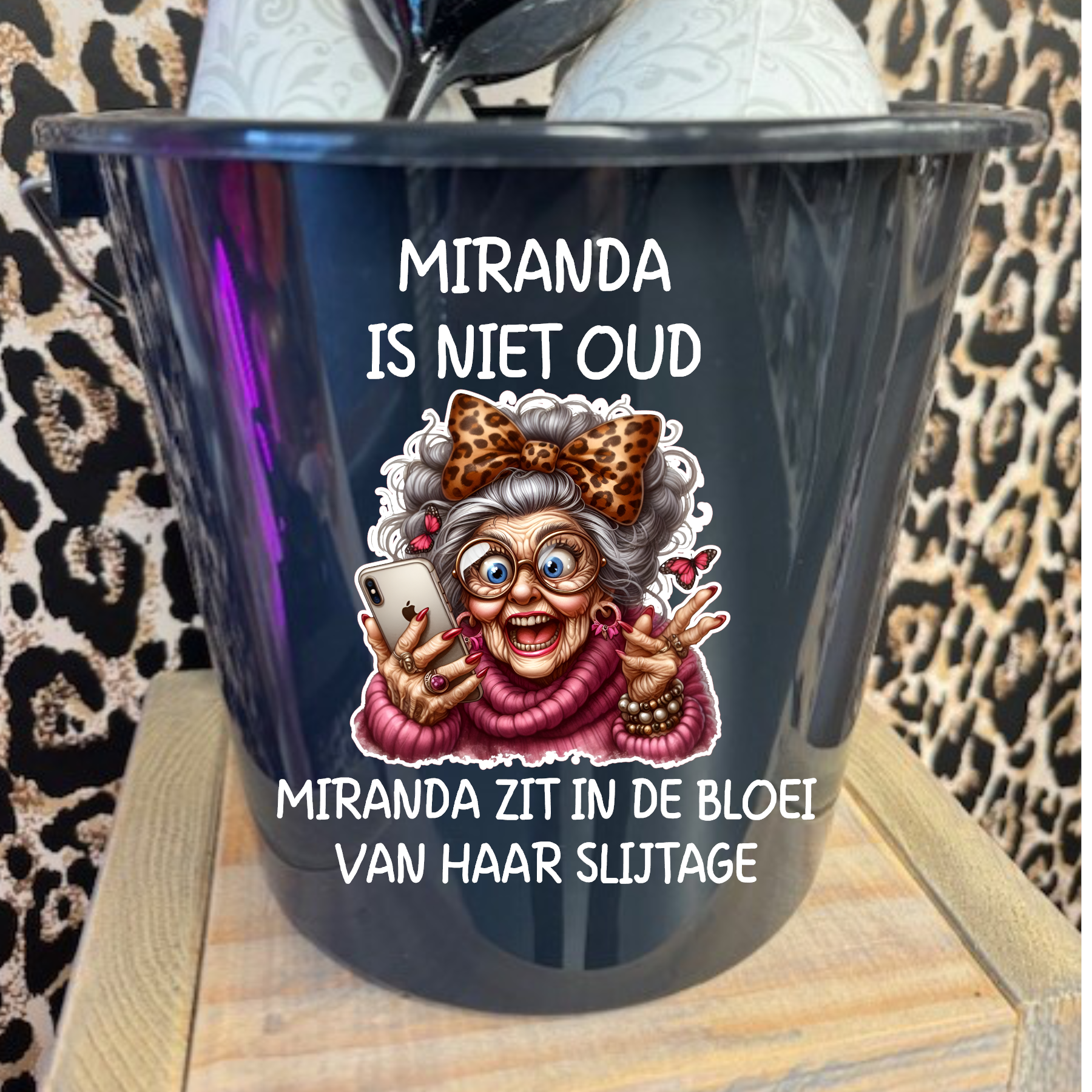 Cadeau emmer- (Naam) is niet oud- Sarah- verjaardag- feestje.