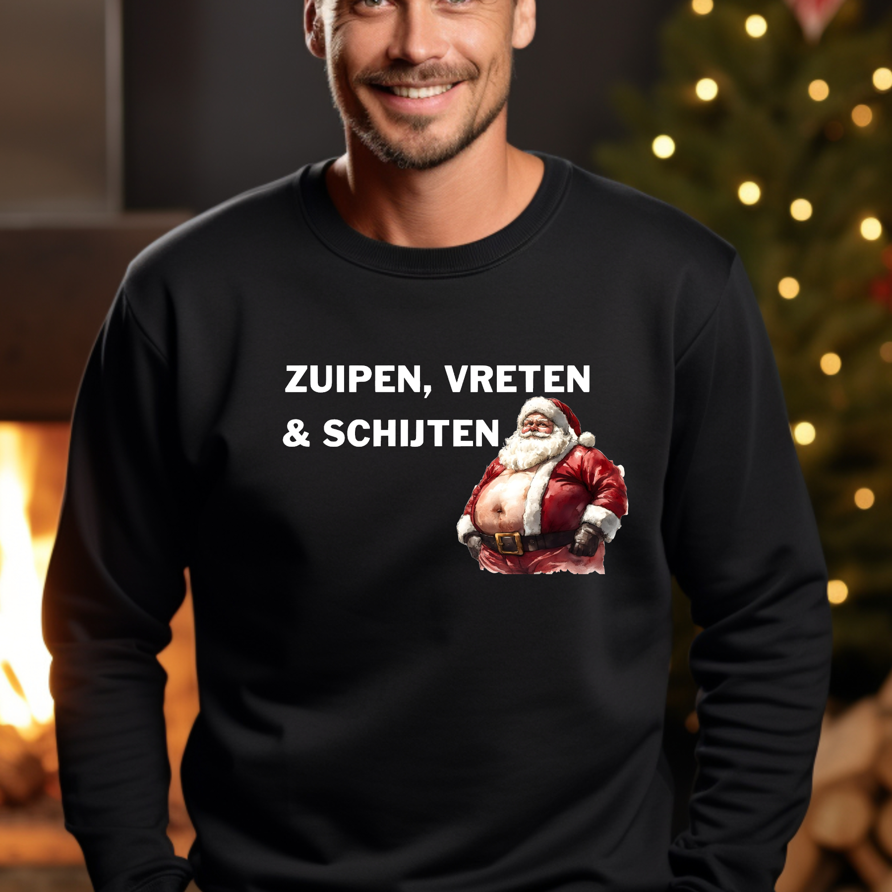 Foute kersttrui- Sweater- Zuipen, vreten en schijten.