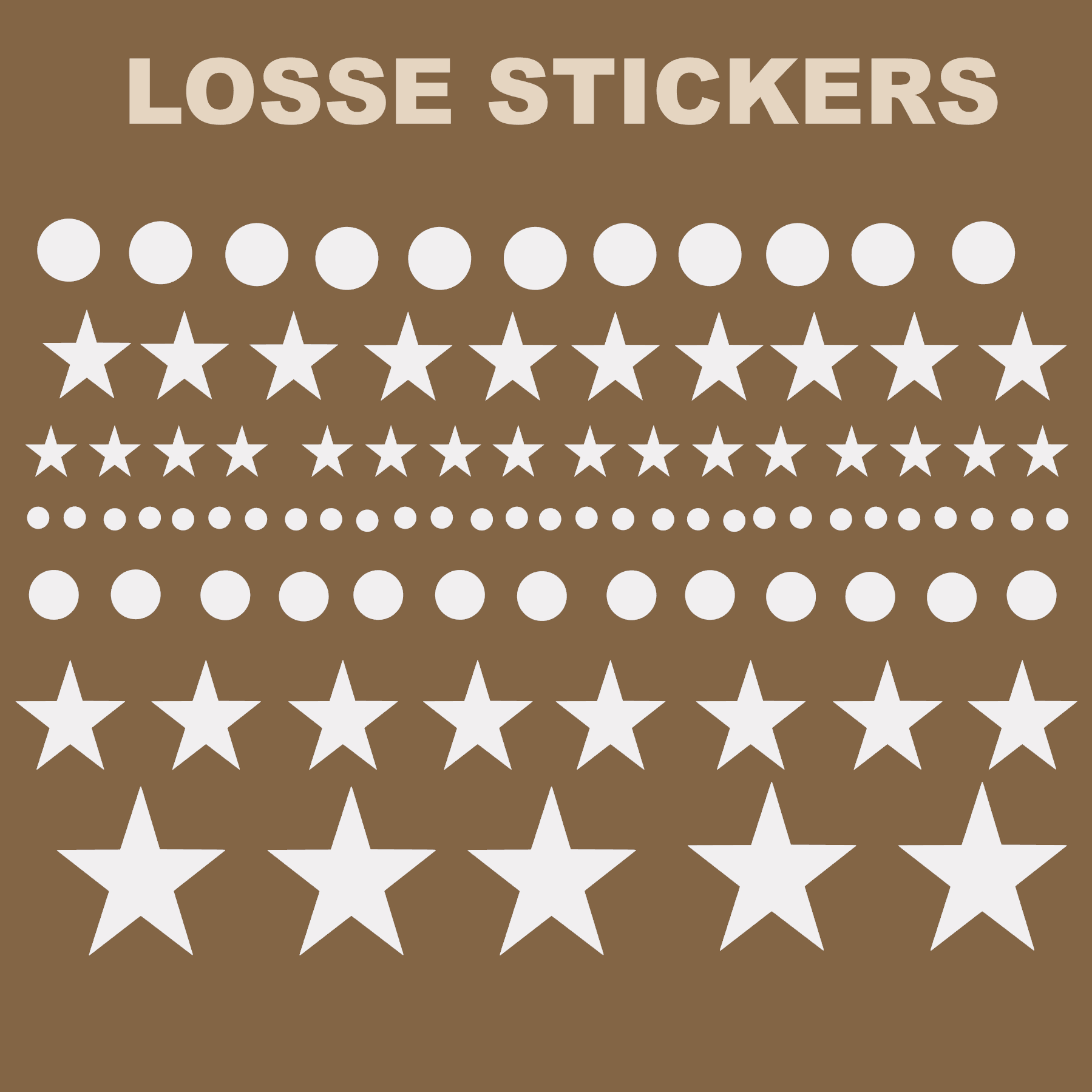 Er kan apart een stickervel met rondjes en sterretjes bij besteld worden.