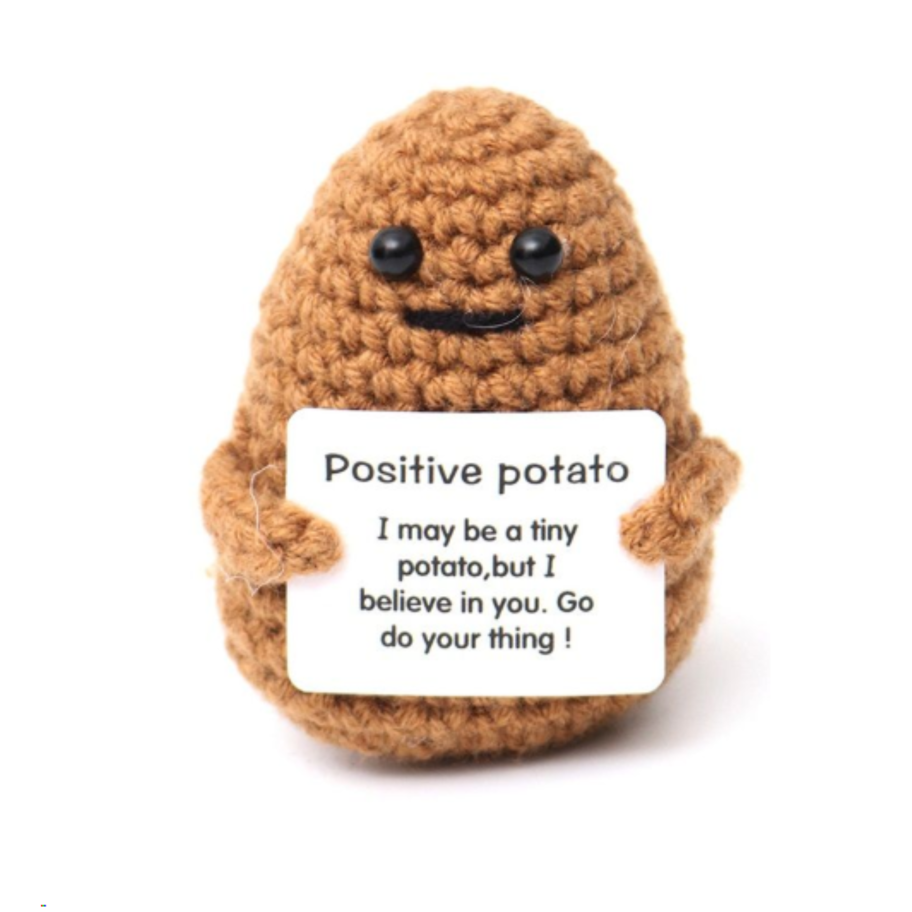 Deze Positive Knitted Potato is perfect voor huisdecoratie, kinderkamers of als leuk cadeau en belichaamt een vrolijke geest die ieders dag kan opvrolijken. Door het compacte formaat kan hij gemakkelijk op planken, bureaus of als onderdeel van een speels arrangement worden neergezet.