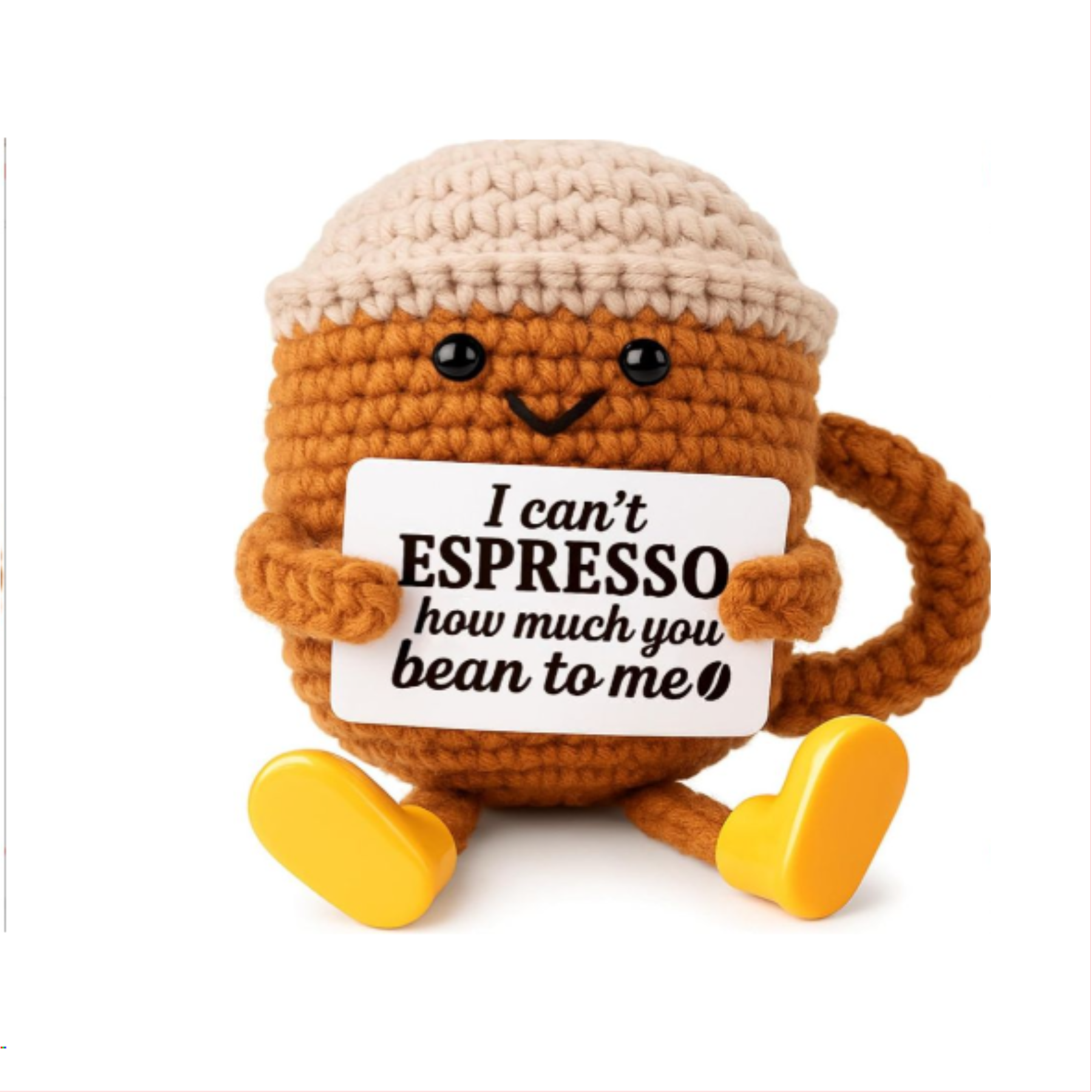 Het ingewikkelde gebreide ontwerp getuigt van uitzonderlijk vakmanschap, waardoor elk stuk uniek en karaktervol is. Of je hem nu op een plank, bureau of nachtkastje plaatst, dit schattige figuurtje dient als dagelijkse herinnering aan vriendschap en positiviteit.