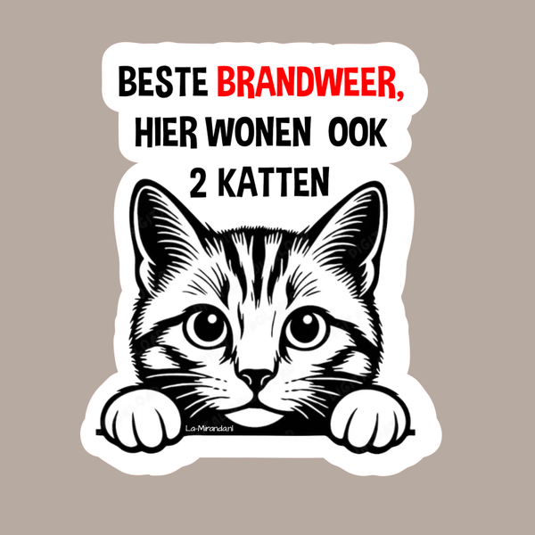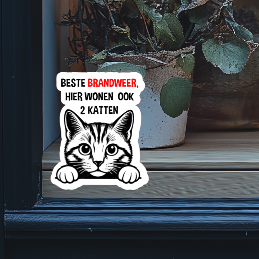 2 stuks Brandweer hier wonen .. katten raamsticker.