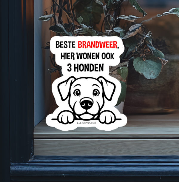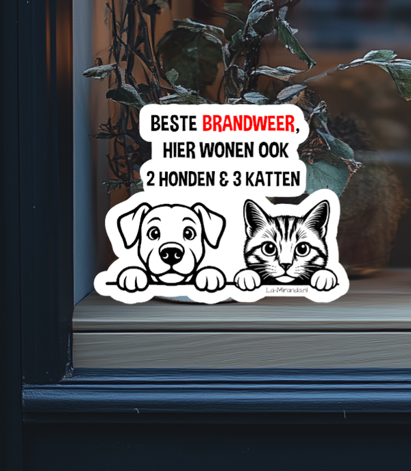 Informatiesticker zodat de hulpdiensten weten bij calamiteiten dat er huisdieren in het pand aanwezig zijn.