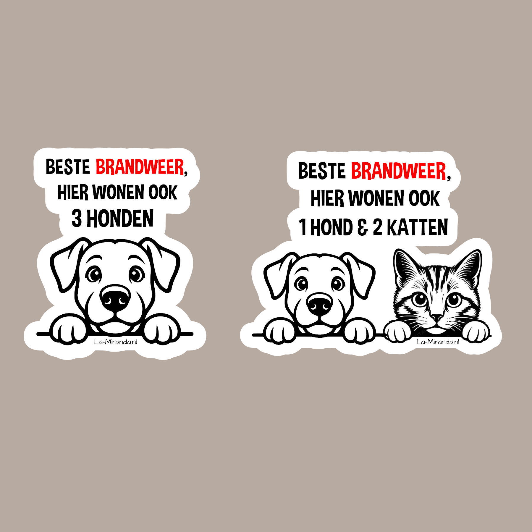 2 stuks Brandweer hier wonen .. katten of honden raamstickers.