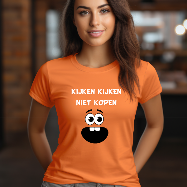 Struin jij met koningsdag de kleedjesmarkt af, of heb je zelf een leuk kraampje, dan mag dit shirt niet ontbreken.