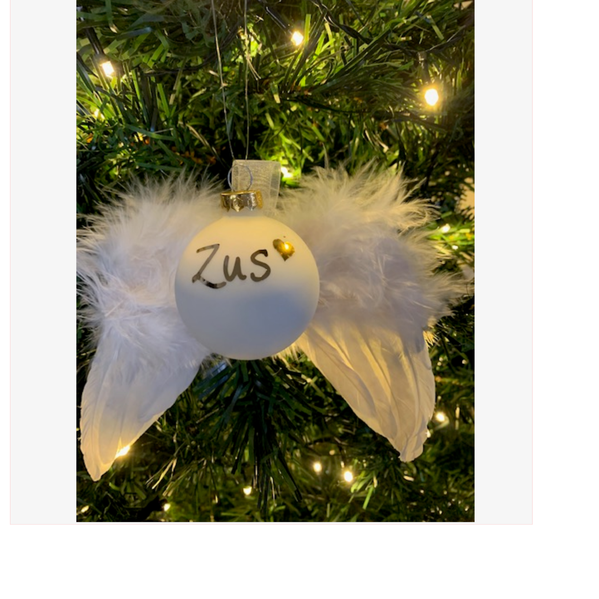 Deze Speciale vleugel kerstbal, worden met zorg gemaakt, voor iedereen die een dierbare moet missen.