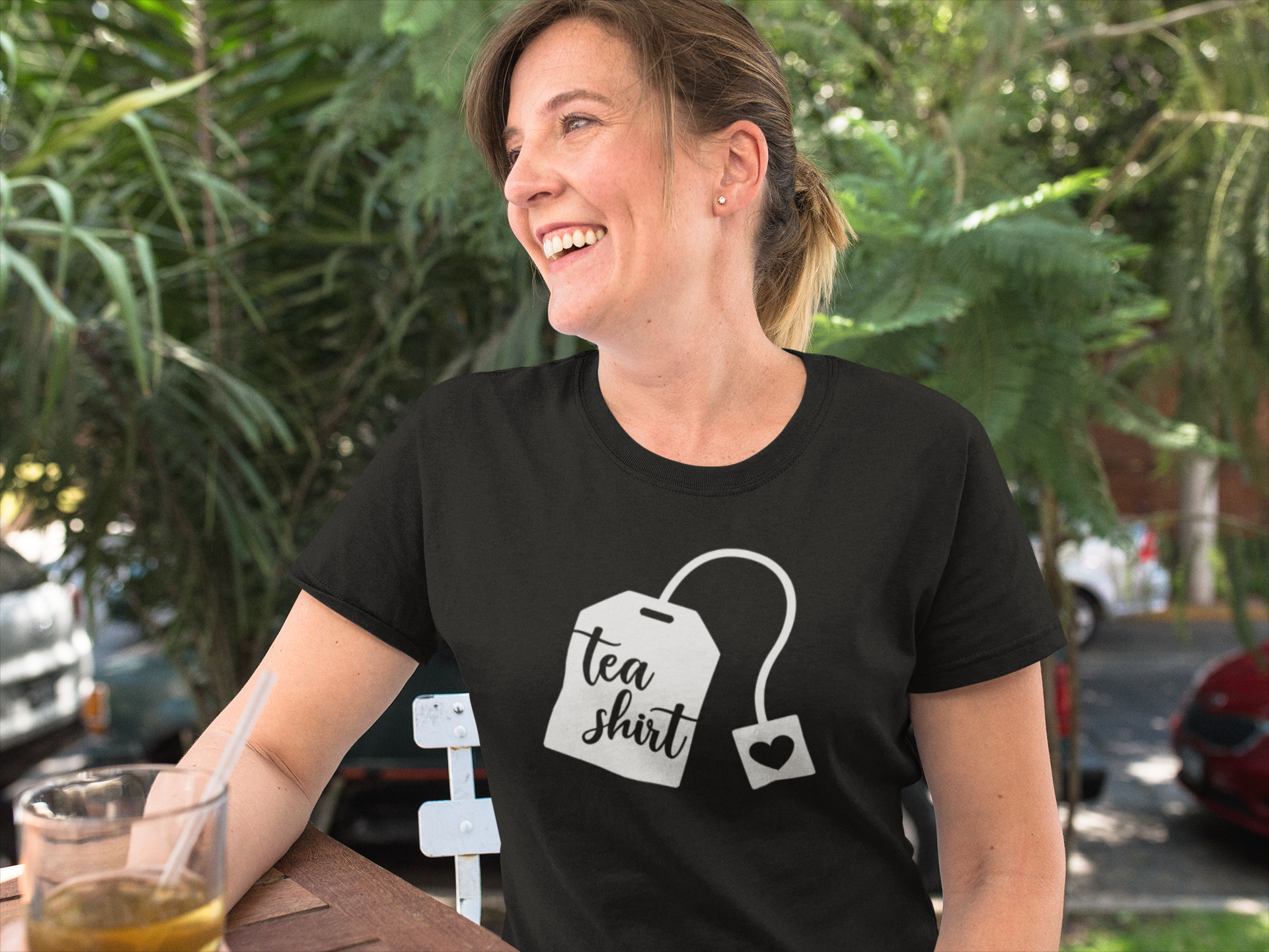 Kleur shirt is zwart, 4 kleuren opdruk.